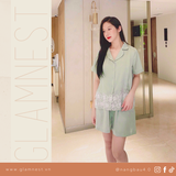 ✔ SET ĐỒ NGỦ có màu xanh bơ trẻ trung, thiết kế đáp ren sang trọng, phù hợp với mọi sắc da.