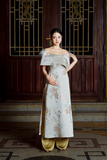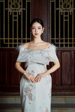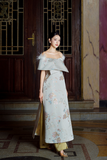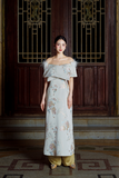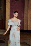 ✔ VÁY BẦU CÁCH TÂN với chi tiết trễ vai vừa phải tạo cảm giác sang trọng, nổi bật, nhưng cũng rất nữ tính.