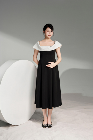 ✔ ĐẦM BẦU CÔNG SỞ có màu đen sang trọng, thanh lịch, làm tôn làn da các nàng bầu và tạo sự thon gọn khi mang bầu.