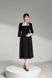 ✔ ĐẦM BẦU CÔNG SỞ có màu đen sang trọng, thanh lịch, làm tôn làn da các nàng bầu và tạo sự thon gọn khi mang bầu.