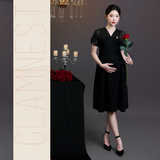✔ ĐẦM BẦU DỰ TIỆC với điểm nhấn chân ngực tạo vòng eo giả kết hợp với dáng váy chữ A giúp giấu bụng bầu tinh tế