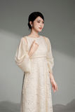 ✔ VÁY BẦU TẾT có màu be thanh lịch, làm tôn làn da các nàng bầu và tạo sự thon gọn khi mang bầu.