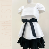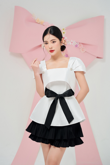 ✔ ÁO BẦU TIỂU THƯ có màu trắng phối nơ đen, vừa cá tính vừa thanh lịch, làm tôn làn da các nàng bầu và tạo sự thon gọn khi mang bầu.