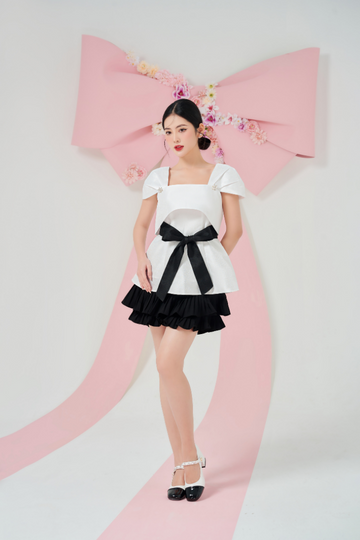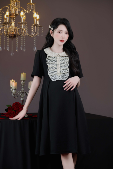 ✔ ÁO & CHÂN VÁY làm từ chất liệu vải tằm đáp ren nhẹ mát, sang trọng, thân thiện với da.