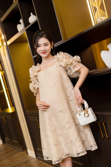 ✔ ĐẦM BẦU DỰ TIỆC hoạ tiết hoa nhí trẻ trung, thanh lịch