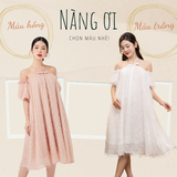 ✔ ĐẦM BẦU TIỂU THƯ có màu trắng và hồng dễ thương, thanh lịch, làm tôn làn da các nàng bầu và tạo sự thon gọn khi mang bầu. Thiết kế dáng suông cổ yếm, hở vai nhưng che bắp tay hiệu quả, tạo phong cách dễ thương, nữ tính & nổi bật cho nàng