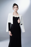 ✔ ÁO VEST BẦU DÁNG NGẮN có màu đen & trắng sang trọng phù hợp với mọi sắc da.