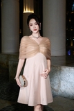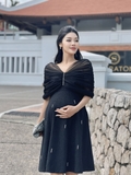 ✔ ĐẦM BẦU DỰ TIỆC có màu đen và be thanh lịch, làm tôn làn da các nàng bầu và tạo sự thon gọn khi mang bầu.