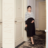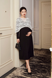 ✔ ĐẦM BẦU CAO CẤP có màu đen phối choàng ren trắng sang trọng phù hợp với mọi sắc da.